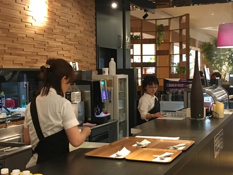 番号札でお客様にお知らせ。配膳も下げるのもセルフサービスなので